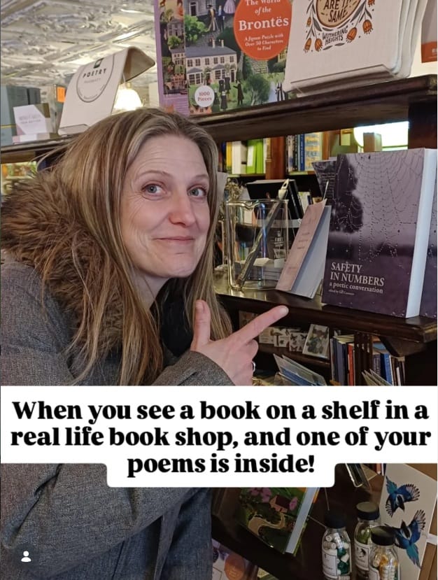 One of my poems appears in this chunky anthology which you can buy directly from the publisher and some bookshops. Indeed, note my excitement at finding a copy in Poetry Pharmacy’s newly opened shop in York recently!